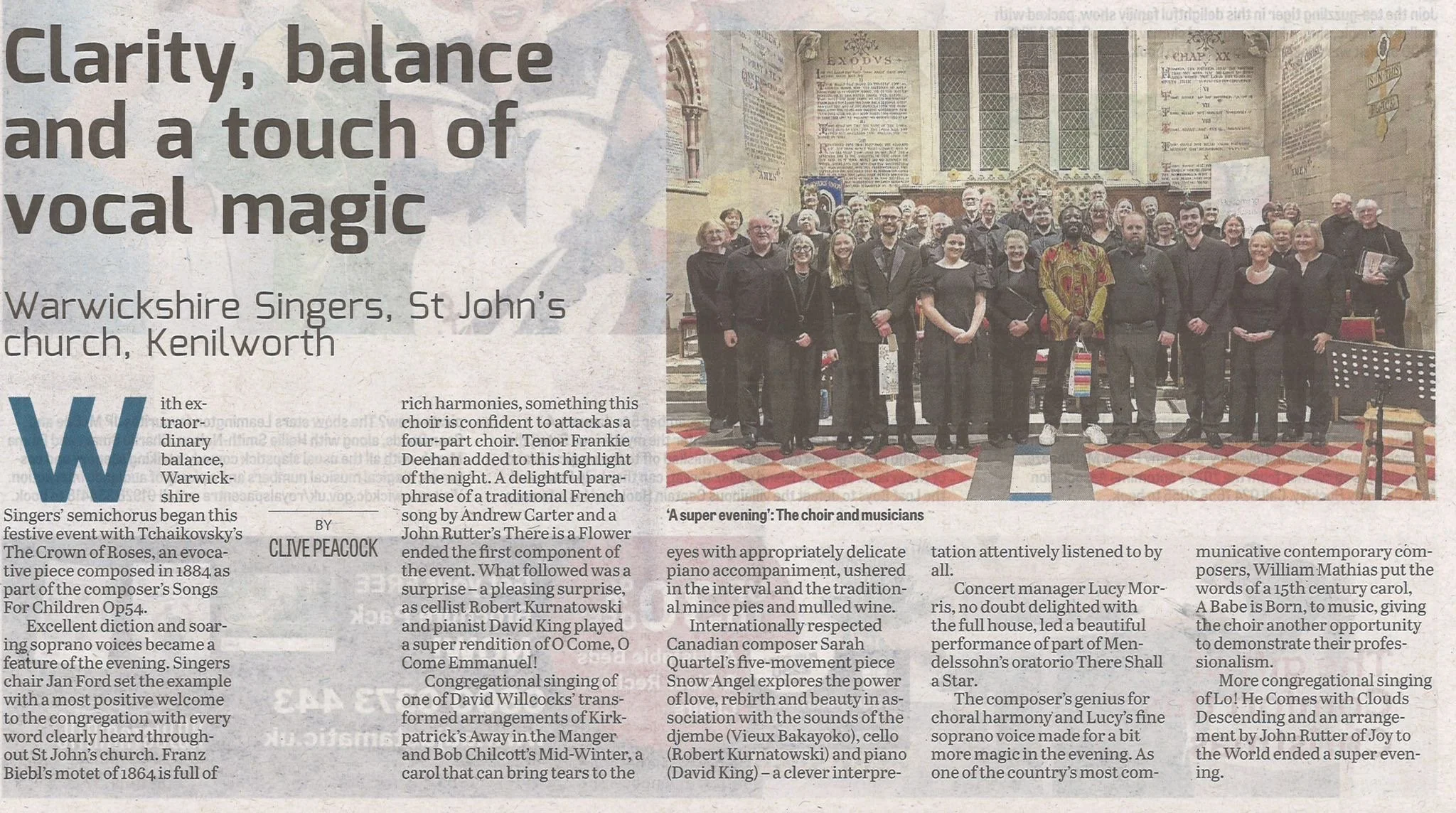 We were delighted to receive a lovely review from Clive Peacock, of the Leamington Courier, for our latest concert titled ‘Midwinter ’. You can take a read of the review below.